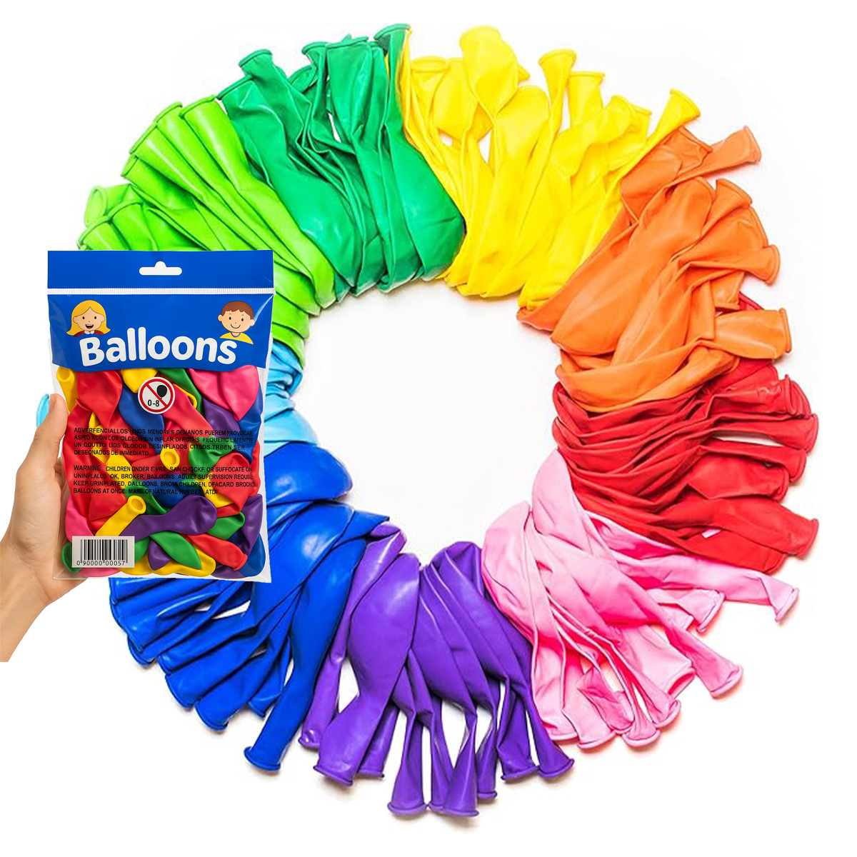 Globos ComunesColores: SurtidosPack 100 unidadesMaterial: Latex resistente de alta calidadTamaño inflado: aproximadamente 30 cm