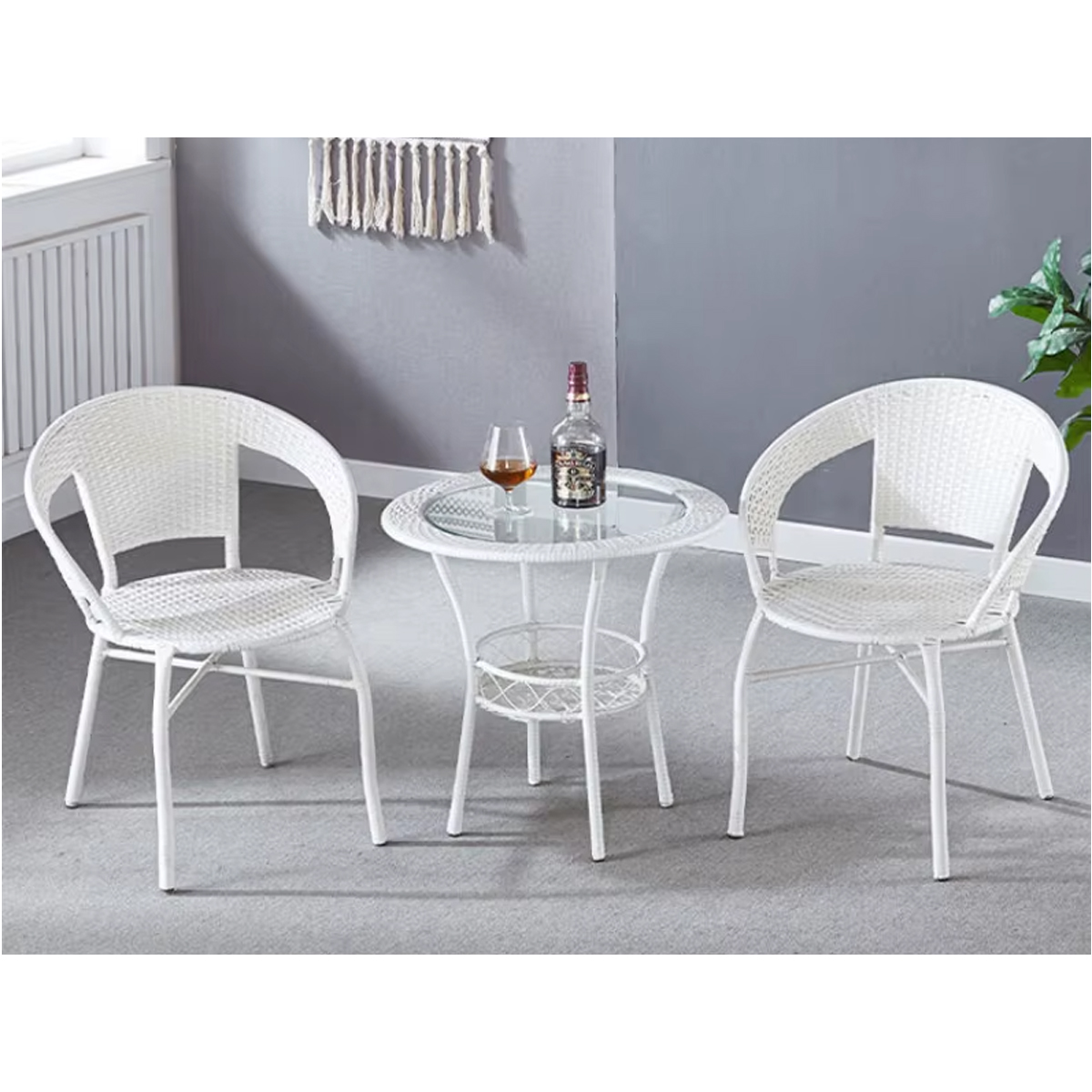 Juego De Sillas y MesaApto para exterioresMaterial: Simil ratán de polipropilanoMedida 90x90x75cmSillas apilable