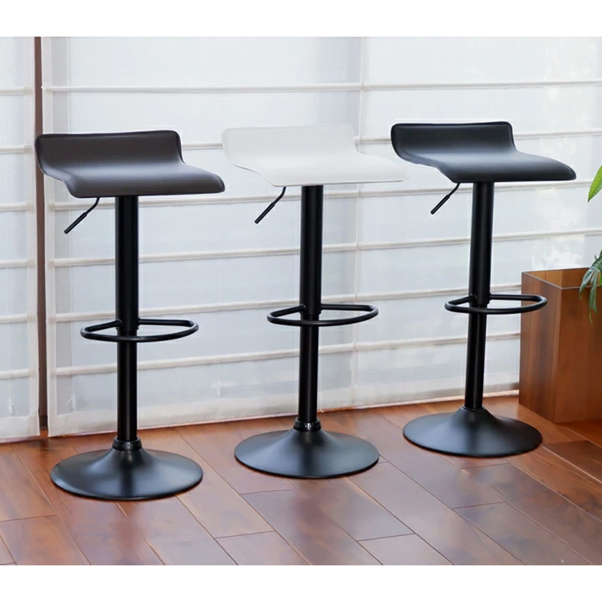Butaca de eco cuero resistente Base metálica color negro con apoyapiés Altura regulable con sistema de gas Altura minima 65.5cm Altura maxima 87cm Medidas del asiento 38,5cm x 38,5cm
